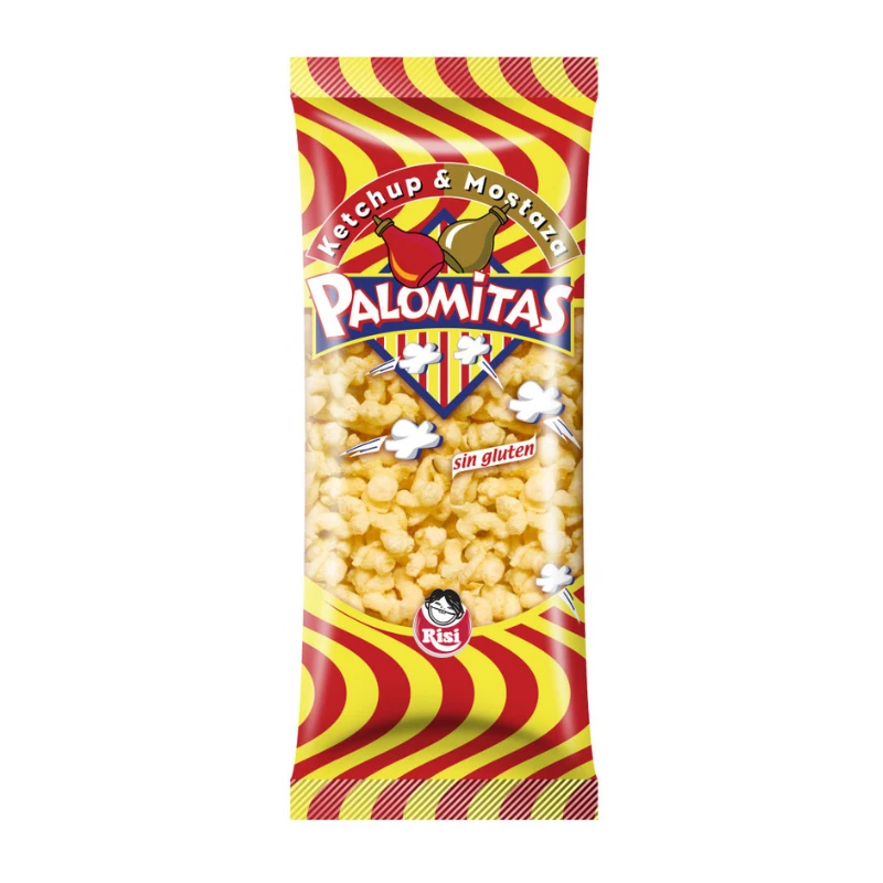Snack de maíz horneado con sabor a kétchup y mostaza. Sin gluten.